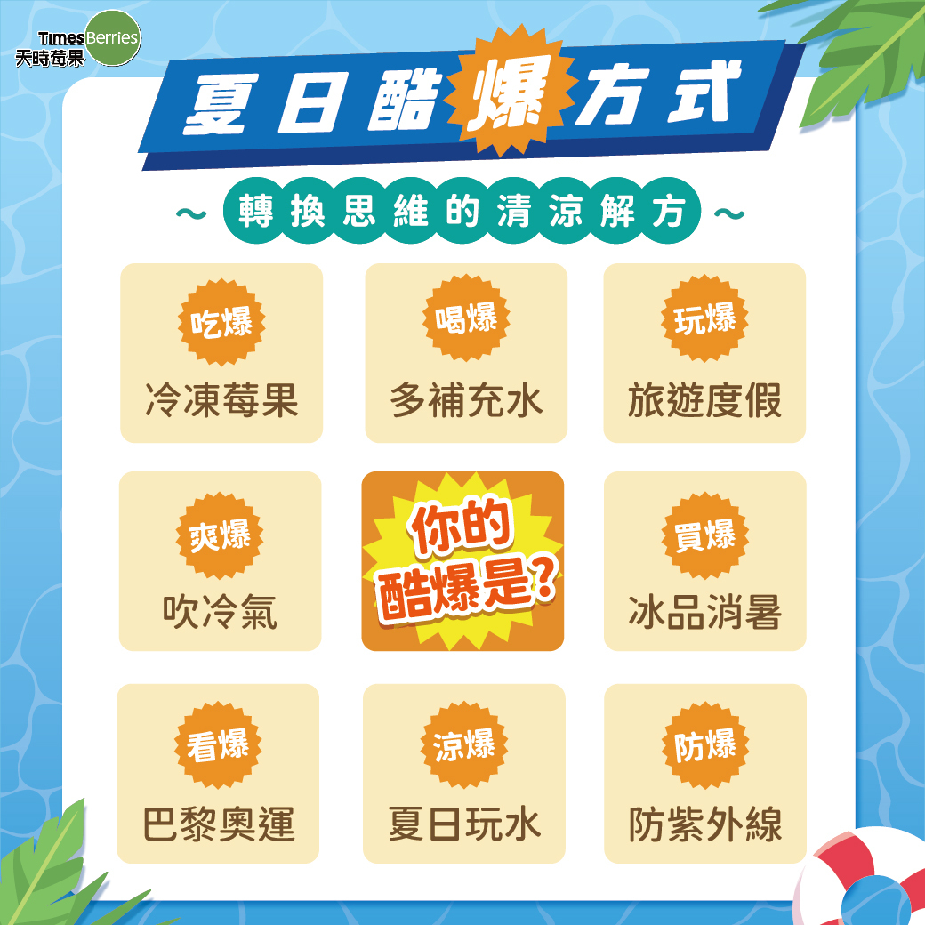 炎熱的天氣讓人熱爆受不了🥵 我們都需要一些清涼的解方來降降溫~ 這裡莓寶教你八種酷爆方式🆒 轉換思維,讓您在酷熱中也能保持涼爽 那你的消暑酷爆方式又是什麼呢?
